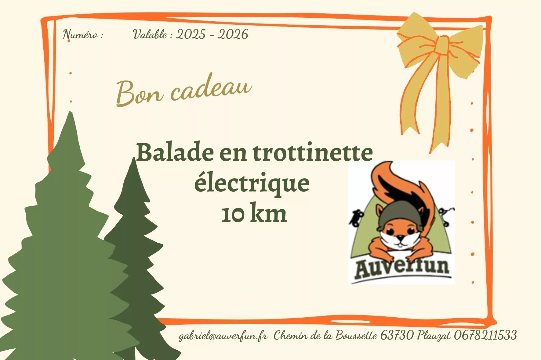 Faites plaisir à vos proches avec un bon cadeau Auverfun. Trottinettes avec GPS ou avec un guide ou bien parcours en moto électrique, choisissez la formule que vous voulez offrir et commandez votre carte cadeau en quelques clics.